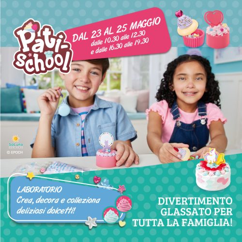 Dal 23 al 25 maggio preparati a vivere tre giornate golosissime con la Pati-School, l’evento dedicato a tutti i piccoli pasticceri in erba!