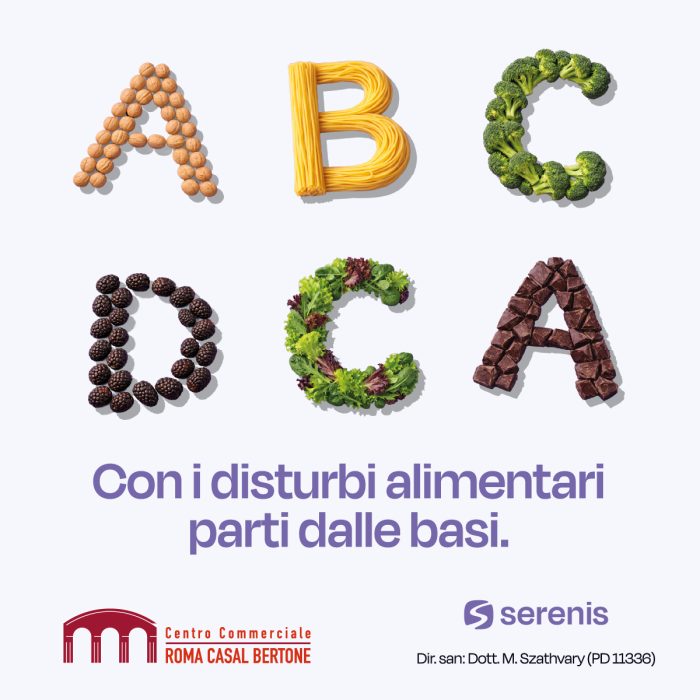 Per questo il Centro Commerciale CasalBertone collabora con SerenisNutrizione in una campagna dedicata ai DCA.