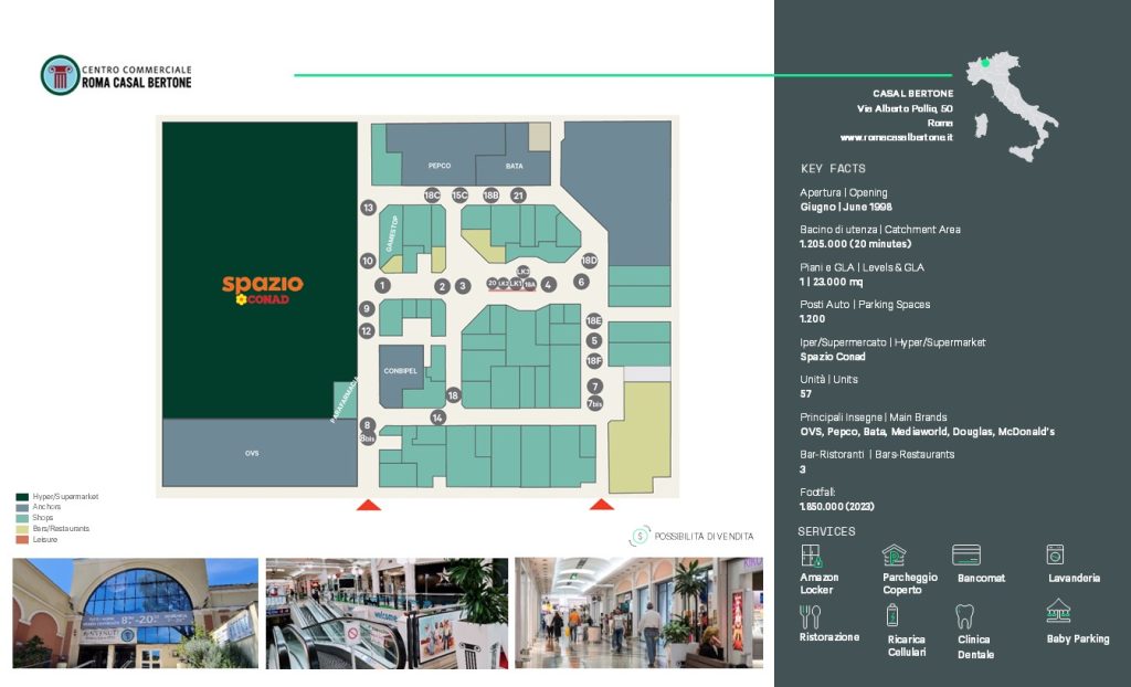Il Centro Commerciale Roma Casalbertone, situato nel quartiere situato nel quartiere Tiburtino, è uno spazio dedicato a tutta la famiglia, dove relax, shopping e intrattenimento si incontrano per regalare un’esperienza unica grazie ad un’offerta merceologica completa e diversificata e ad una vasta gamma di servizi a disposizione della clientela.